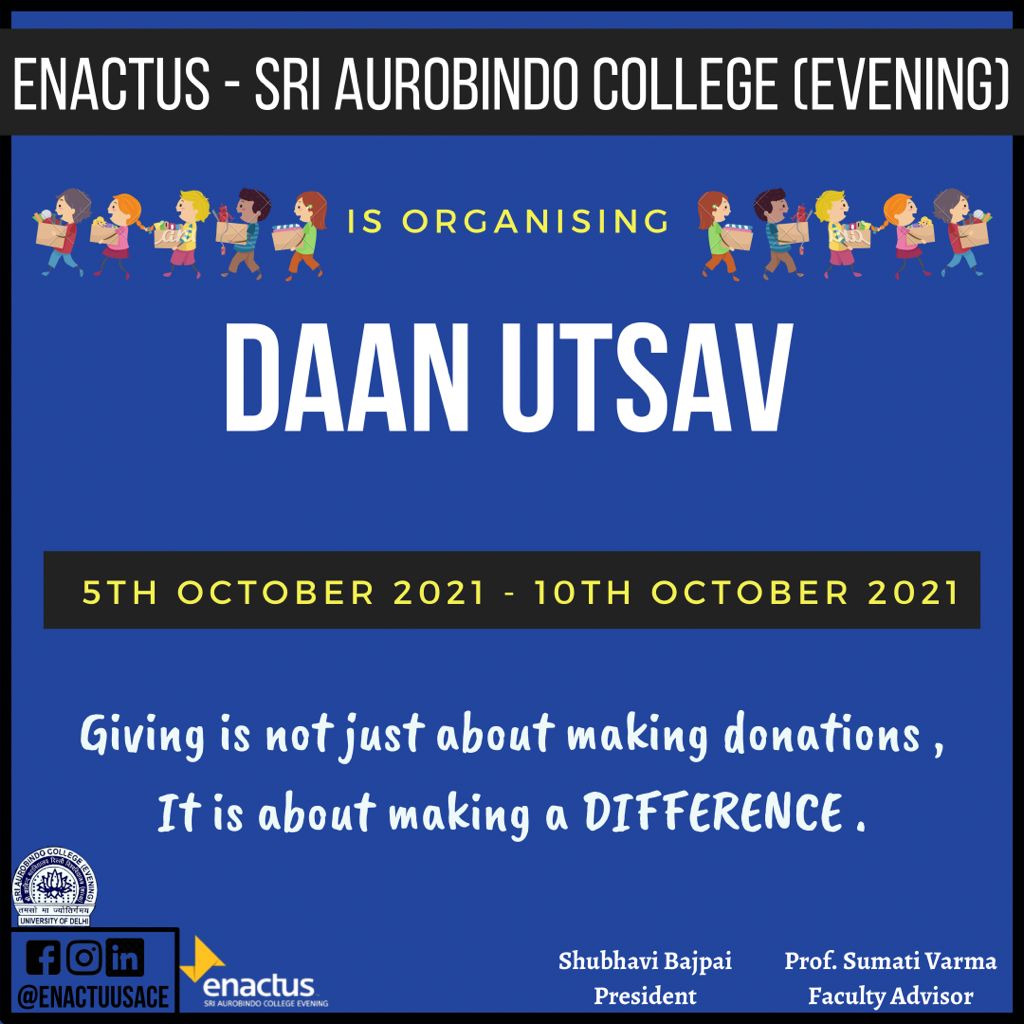 View DetailsEnactus Sri Aurobindo College Evening is Organising DAAN UTSAV